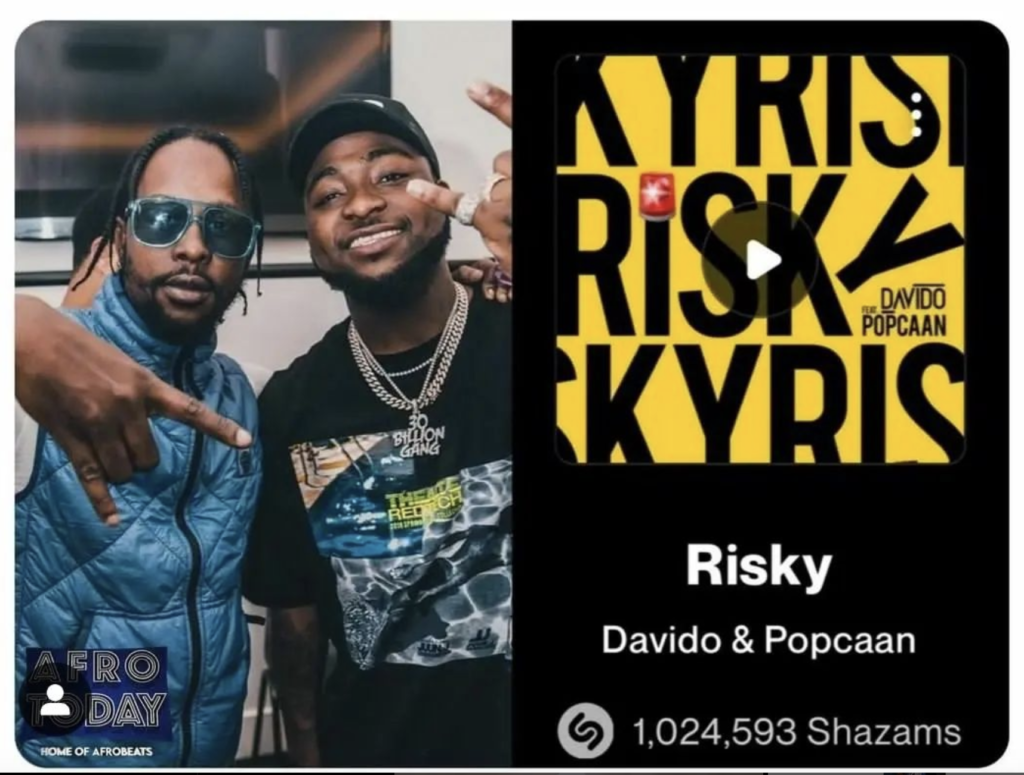 For Davido, “Risky” now stands as his fourth most Shazam-ed song as a lead artiste, showcasing the growing global appreciation for his unique blend of Afrobeat and dancehall. Popcaan, on the other hand, sees it becoming his second-most Shazam-ed track ever, a testament to his continued influence in the reggae and dancehall genres.