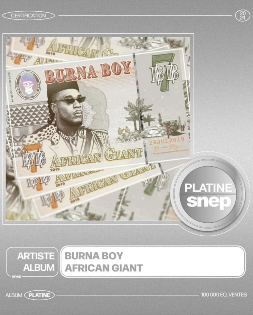 This also marks a historic achievement in the realm of African music. As the first Nigerian album to attain platinum certification in France, “African Giant” not only cements Burna Boy’s legacy as a pioneering force in contemporary music but also paves the way for future generations of African artists to commandeer the international stage. Burna Boy’s achievement underscores the continent’s profound influence on global culture by showcasing the richness and diversity of African musical heritage. It reaffirms its rightful place at the forefront of the music industry.